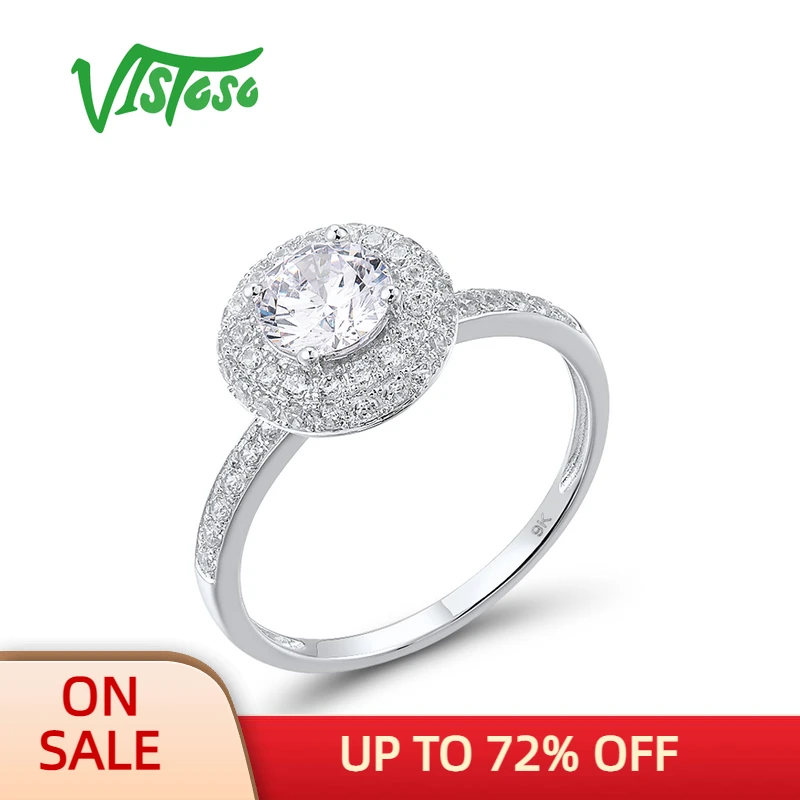 Vistoso Gold Rings For Women Genuine 9k 375 White Gold Sparkling White Cz Elegant Round Ring Wedding Engagement Fine Jewelry Rings Aliexpress