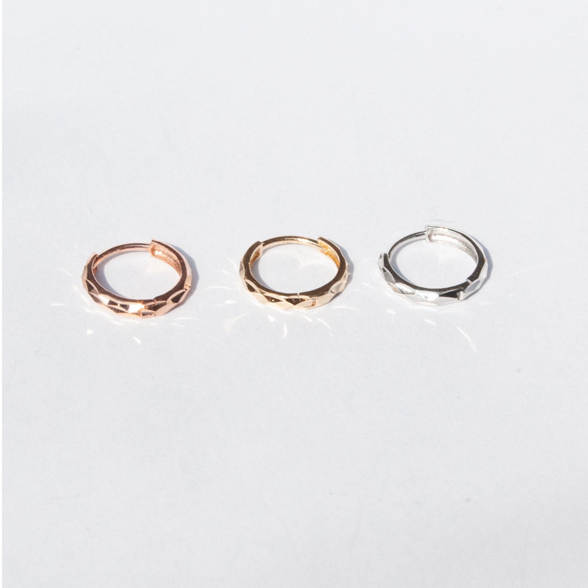 Gold Faceted Hoop Earring Tiny Gold Hoops Gold Hoop Etsy