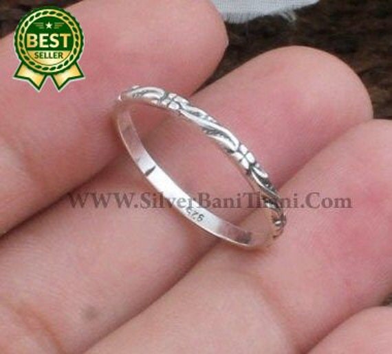 Silver Band Ring Leaf Design Silver Band Ring Daily Use Etsy